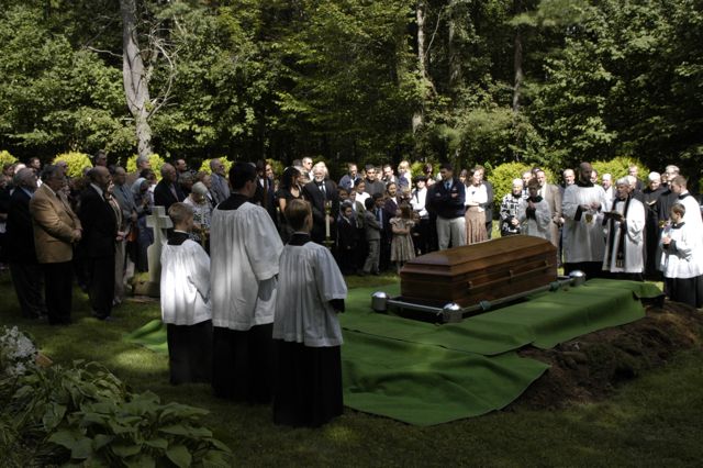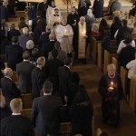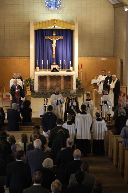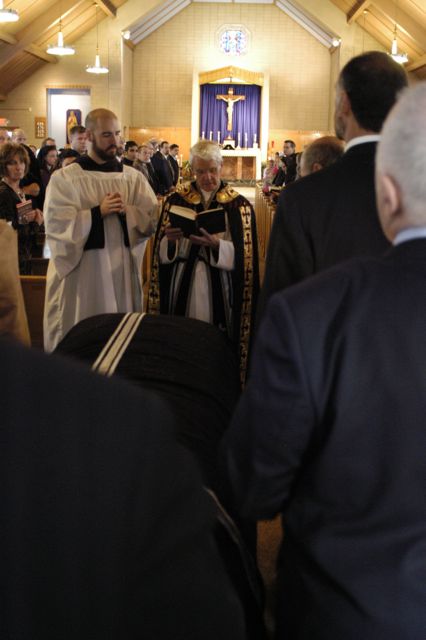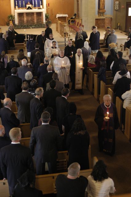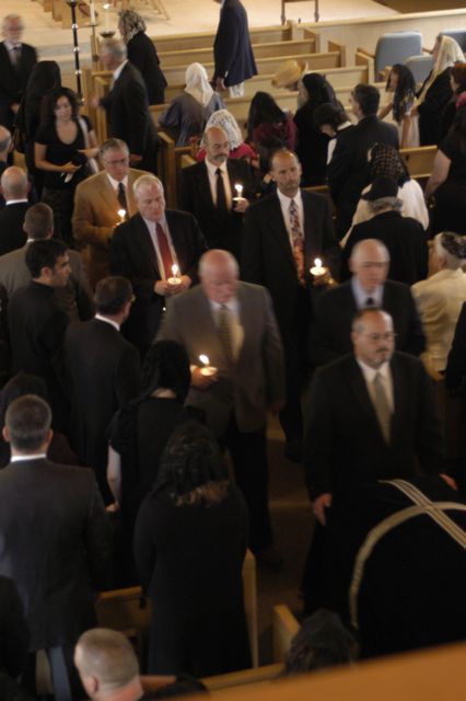 - Another view. All of the clergy and pall bearers hold candles.