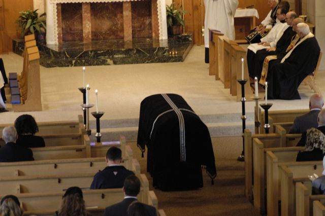 - The Pall Bearers bring the corpse into the narthex of Saint Margaret Mary’s.