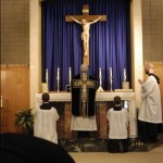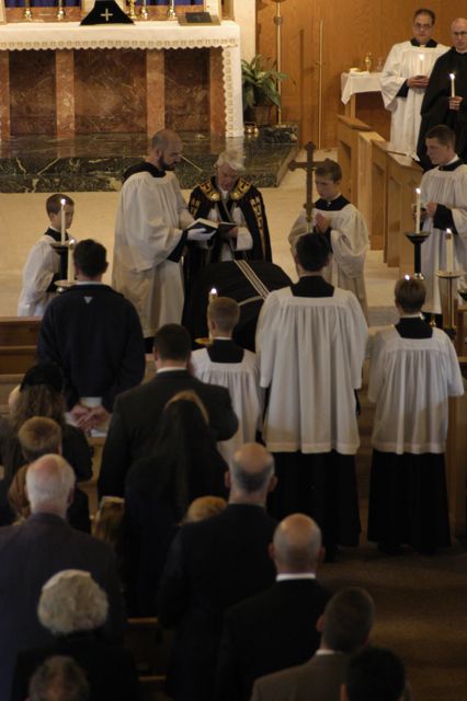 In the loft, the choir of our brothers and sisters was supplemented by priests and layfolk who, with little time together to practice, sung the Gregorian chant and some sacred polyphony most beautifully. The servers were our boys who serve at the Center regularly. The Master of Ceremonies was your humble servant, a detail which makes me conlude that the angels must have been with us, for the ceremony went off virtually flawlessly.