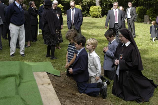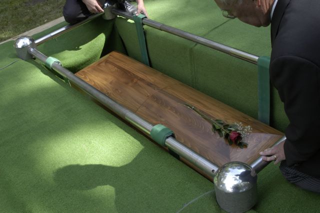 - Brother being carried to his final resting place.