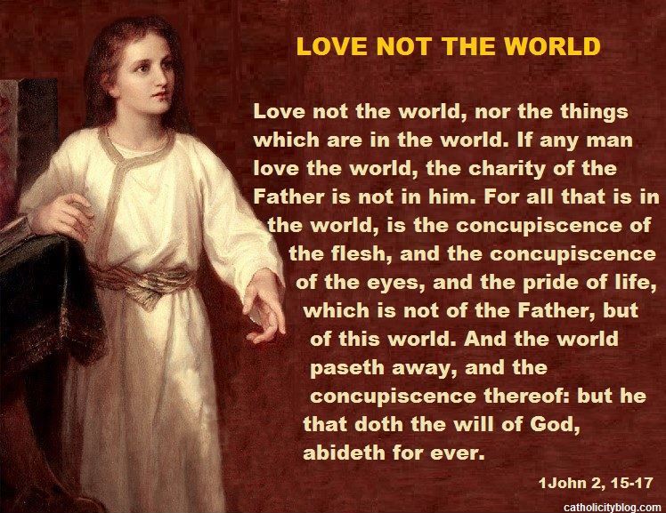 In this sense, then, the world is everything that is opposed to our Lord Jesus Christ, that refuses to recognize Him, and that resists His divine guidance. Those false maxims which tend to weaken the love of God in our souls; which recommend the vanities that fasten our hearts to this present life; which cry down everything that can raise us above our weaknesses or vices; which decoy and gratify our corrupt nature by dangerous pleasures, which, far from helping us to the attainment of our last end, only mislead us — all these are ‘the world.’