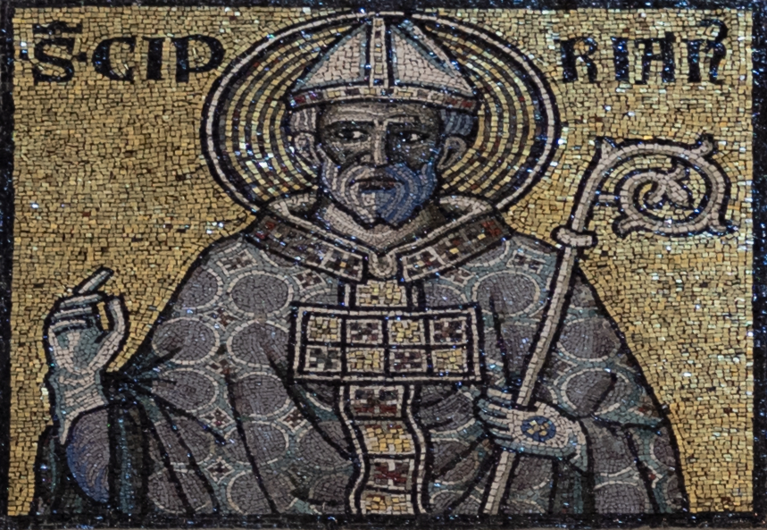 Mosaic of Cyprian the Bishop in the Florence Baptistery. Photo credits (cropped from original): SuzzaneMcg, CC BY 4.0, via Wikimedia Commons.