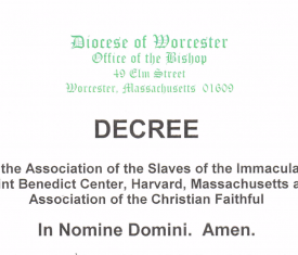 From Father Jay Finelli, at iPadre.net: Congratulations to my dear friends, The Slaves of the Immaculate Heart of Mary in Still River, Massachusetts. On 27 October, the Most Rev. Robert J. McManus granted them canonical status as a Public Association … Continue reading