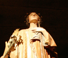 He was a Roman soldier who witnessed the torments of Saint Laurence and was thereby converted. Saint Laurence baptized him while in prison and Saint Romanus also became a martyr.
