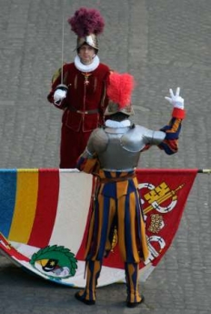 While some may deplore the fact that the Swiss Guard no longer serves a military purpose, their function is still of great importance. The world is a much more dangerous place now that it was when Julius II formed his personal military force in 1506, and the Guard has had to change with the times. The pay is still low, but the prestige of the vocation of protecting the person of the leader of the world’s Christians is, in the opinion of the Guardsmen and their families — and their homeland of Switzerland — the highest calling a young Swiss Catholic can have.