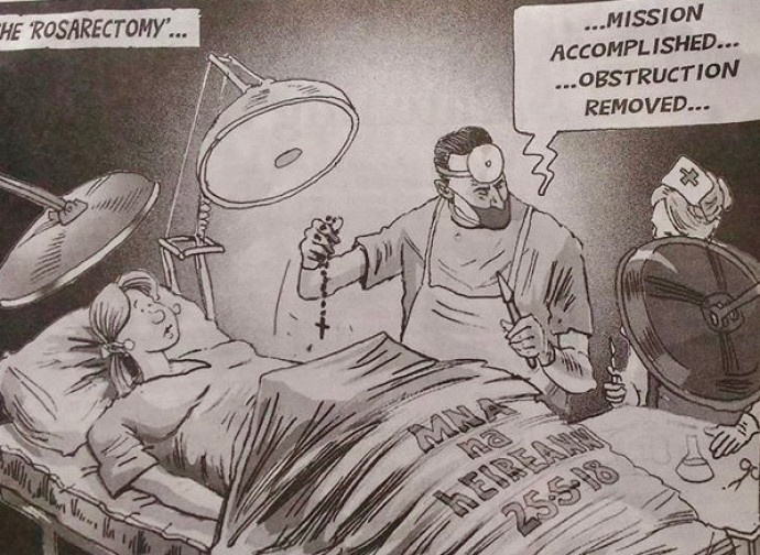 This vile, sacrilegious, demonically evil cartoon (see below) is how Ireland’s largest newspaper, The Sunday Independent, celebrated the repeal of the Fifth Commandment in what was once the Isle of Saints and Scholars!
