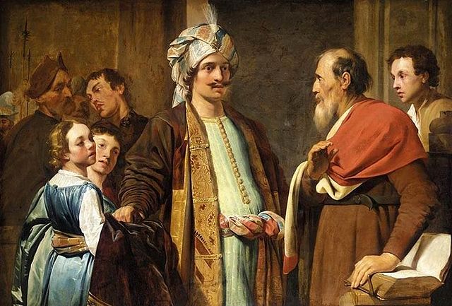 Elisha refusing the gifts of Naaman, by Pieter de Grebber 1630 (source)