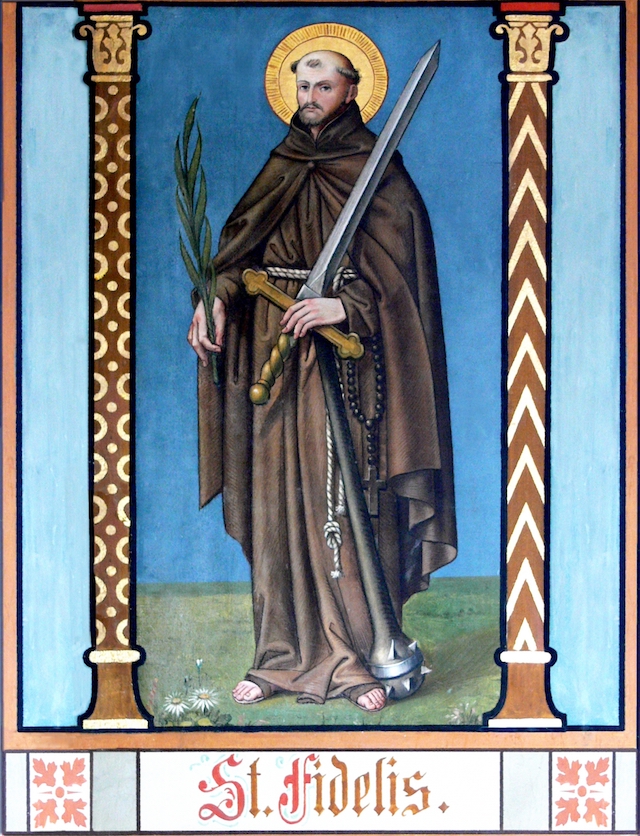 He was a former lawyer who joined the Capuchins. He tried to convert to the Catholic Faith for the sake of their salvation the people of Switzerland who had lost the Faith during the Protestant Reformation. Saint Fidelis was so successful in bringing lapsed Catholics and Protestants back to the Faith that his enemies in Switzerland grew furious. They stabbed him to death.