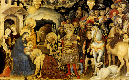 January 6 is the feast of these three Magi, who brought Jesus gifts of gold, frankincense and myrrh. The Magi brought Jesus gold to show that He was a king; frankincense to honor Him as God; and myrrh to greet Him as man. These Magi first saw the star which led them to Bethlehem on the previous March 25, the day, and at the moment, that Jesus was conceived in Mary’s womb. It took the Magi nine months and twelve days to reach Bethlehem, guided by the star. The star left them when they were in Jerusalem. But it shone again after the Magi left Jerusalem, and led them to the cave of Bethlehem. Our Lady let each of the Magi hold Jesus in his arms. They were given some of His baby clothes to bring back to the East by way of relics. The Magi returned to the East, to Persia and later were baptized there by Saint Thomas the Apostle, in the year 40. All three of the Magi were martyred for the Catholic Faith. Their names are now, and should always be called, Saint Gaspar, Saint Melchior and Saint Balthasar. The bodies of Saint Gaspar, Saint Melchior and Saint Balthasar were first brought to Constantinople, and then to Milan, and in the twelfth century they were placed in the Cathedral of Cologne, in Germany, where they are venerated with much love by the Christians who worship there.