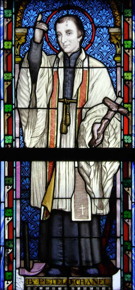 Pierre Chanel (Petelō Saineha), depicted on a glass-in-lead window of the Catholic church of Lapaha, Tonga. Photo by Tauʻolunga (source).