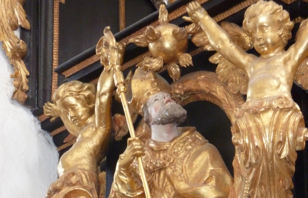Parish Church of the Assumption of Mary, former Cistercian abbey church, Baumgartenberg Abbey, Upper Austria: Relief of St. Robert of Newminster on the pulpit. (Photo cropped from original.) Photo credits: BSonne, CC BY-SA 3.0, via Wikimedia Commons.