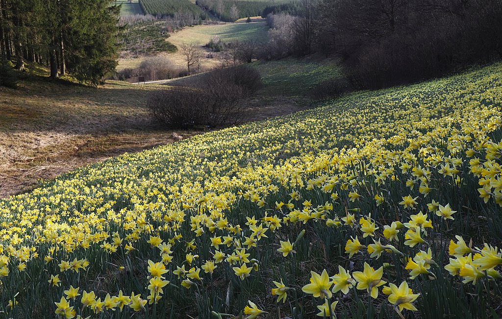 Narcissus flower (Narcissus pseudonarcissus) in the Holzwarchetal near Mürringen, East Belgium. Frank Vassen from Brussels, Belgium, CC BY 2.0, via Wikimedia Commons.