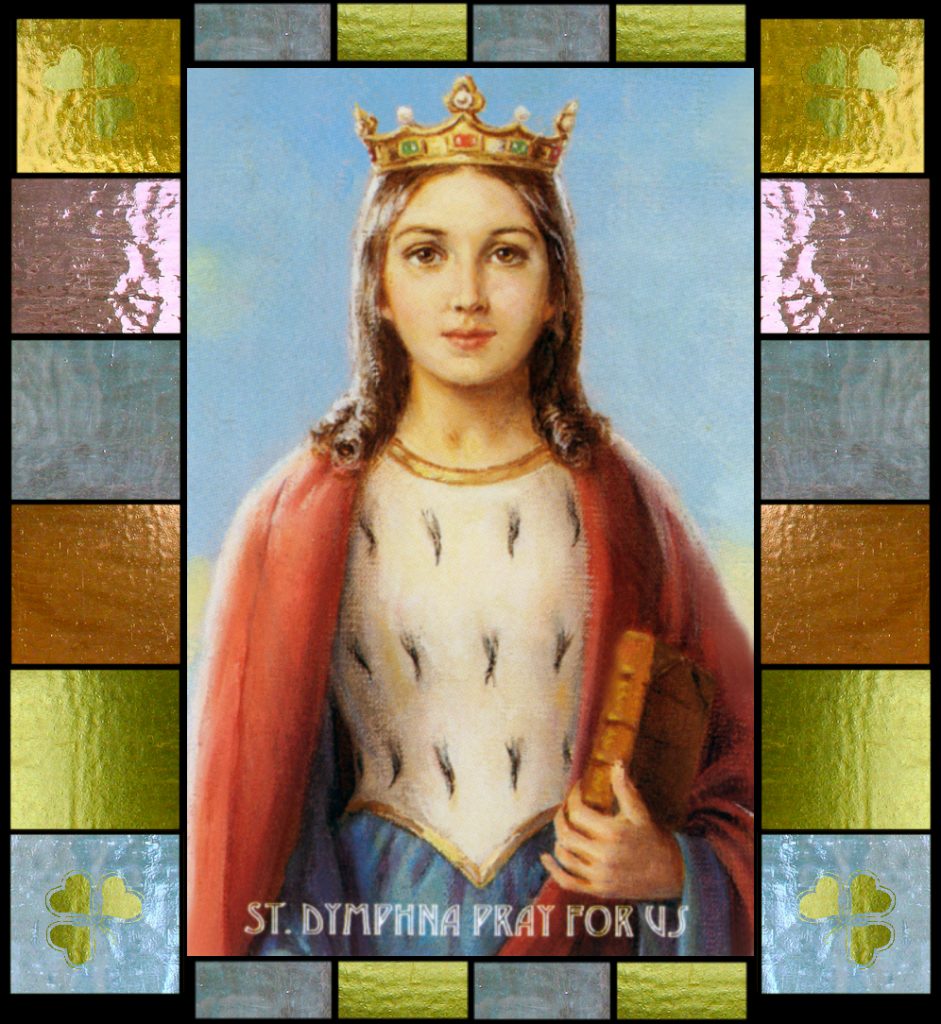 Saint Dymphna is represented in Catholic art as a princess holding a sword, and often with a fettered demon at her feet. She is the patroness of runaways, diabolic possessions, asylums, and mental health workers; and she is invoked against epilepsy, sleepwalking, and insanity. Her feast day is kept on May 15th.