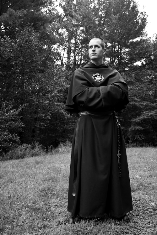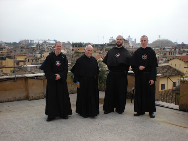 Our formation consists of a six-month postulancy and a two-year novitiate, during which time the Rule, the evangelical counsels, and the spirit of the Congregation are studied. Upon entrance into the postulancy, the Brother is given his religious name and his work habit. The habit of the congregation (described above) is taken when the candidate enters the novitiate, sans Rosary. If the novice is admitted to vows, he first makes his three-year simple profession, receiving his profession Rosary, which he wears in the fashion of a mendicant friar, on his left side, as his “spiritual sword.” After the three years of simple profession, the Brother professes his perpetual vows. He is then a religious for life.