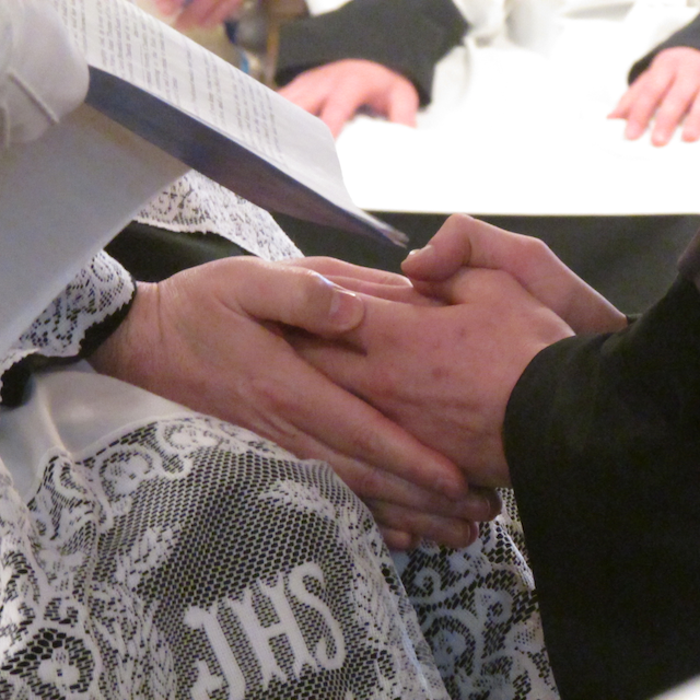 - A Brother professing vows in the hands of his superior.